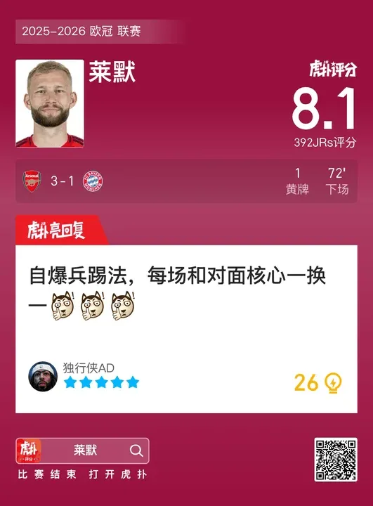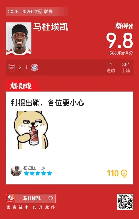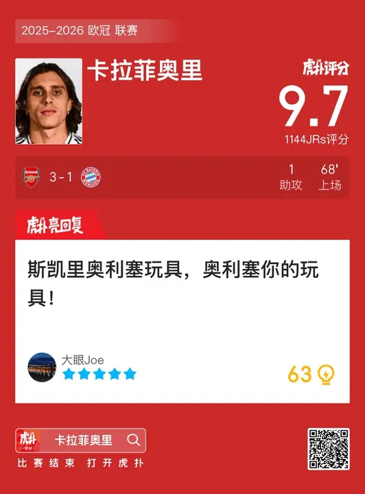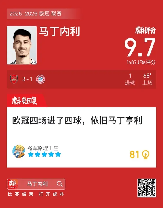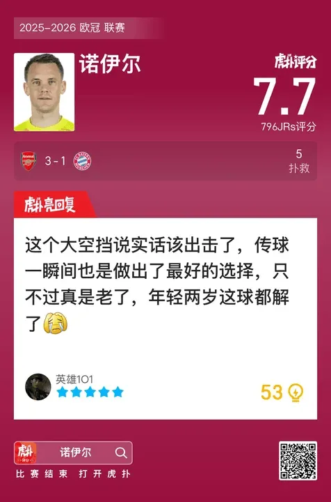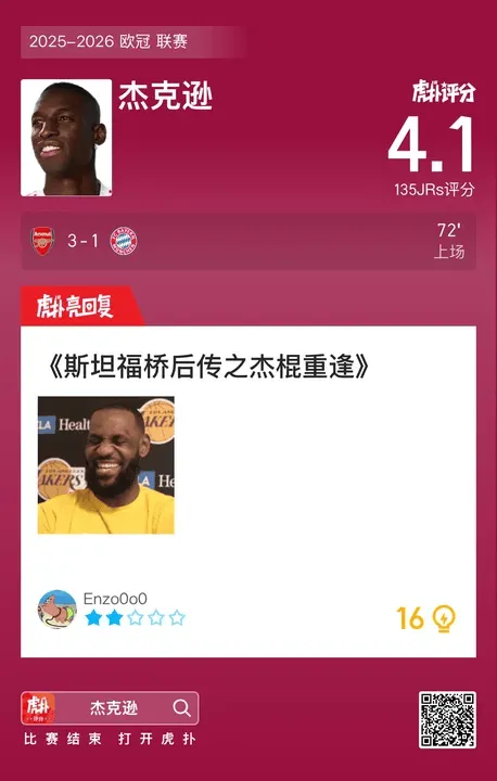歐冠聯(lián)賽第5輪焦點大戰(zhàn),阿森納主場3-1擊敗拜仁慕尼黑。對皇一起來看看JRs貢獻(xiàn)了哪些神評!馬球迷打