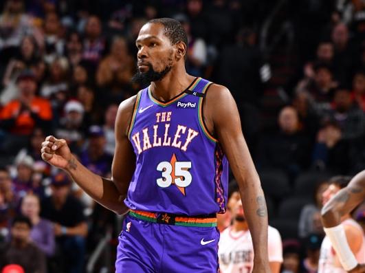 杜蘭特過去兩場比賽場均得到40分,真實命中率66%,但太陽兩場失252分遭遇2連敗。