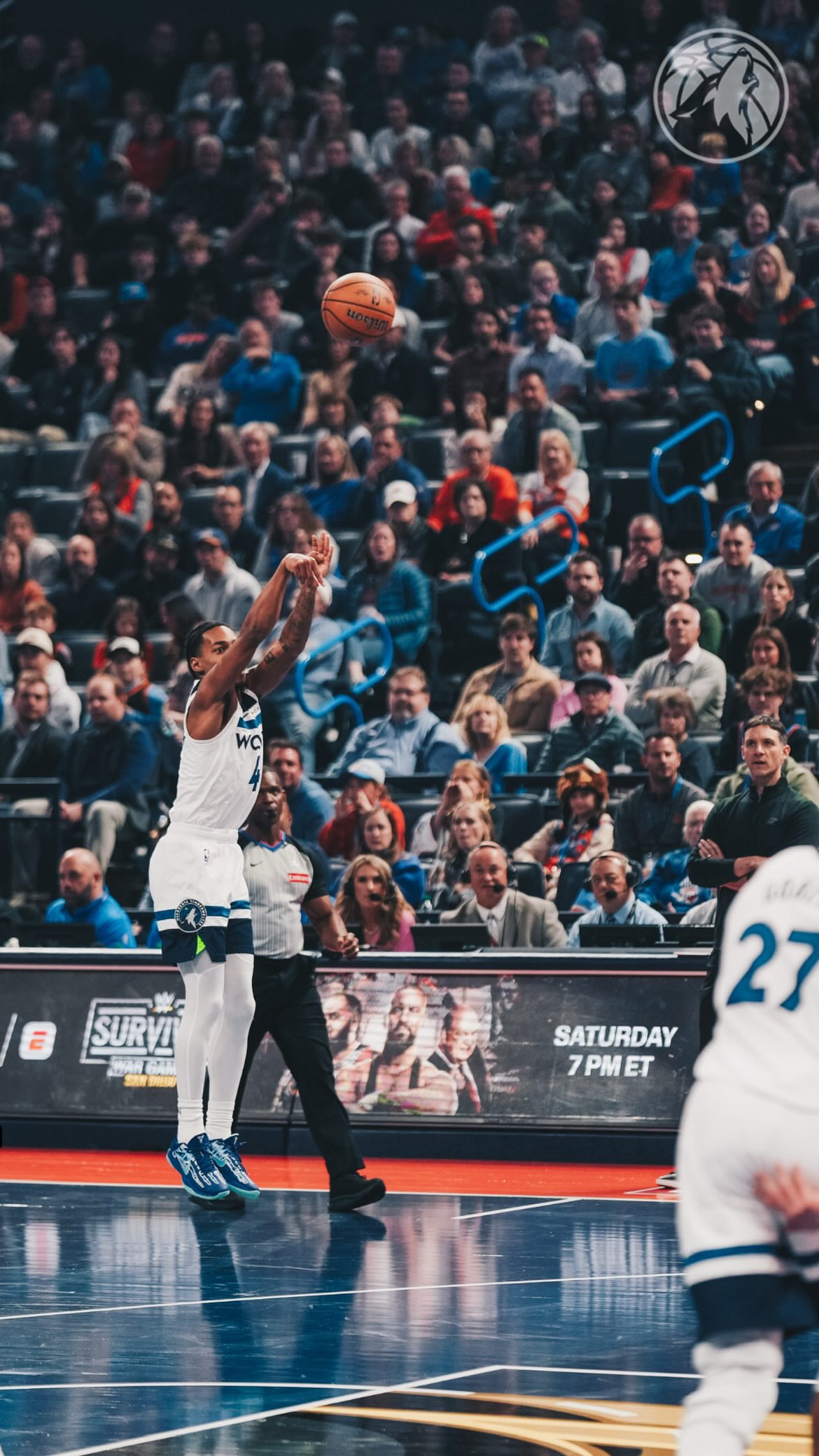 虎撲11月27日訊 森林狼官方更新社媒,曬出羅伯特-迪林厄姆賽場投籃瞬間照片。官方更新