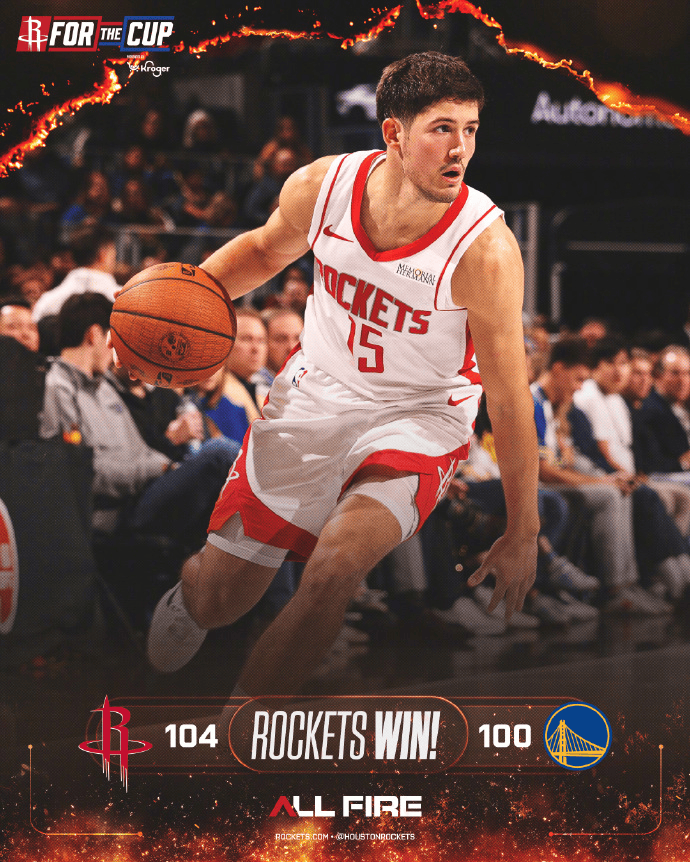 虎撲11月27日訊 NBA杯小組賽,火箭104-100戰(zhàn)勝勇士。板火