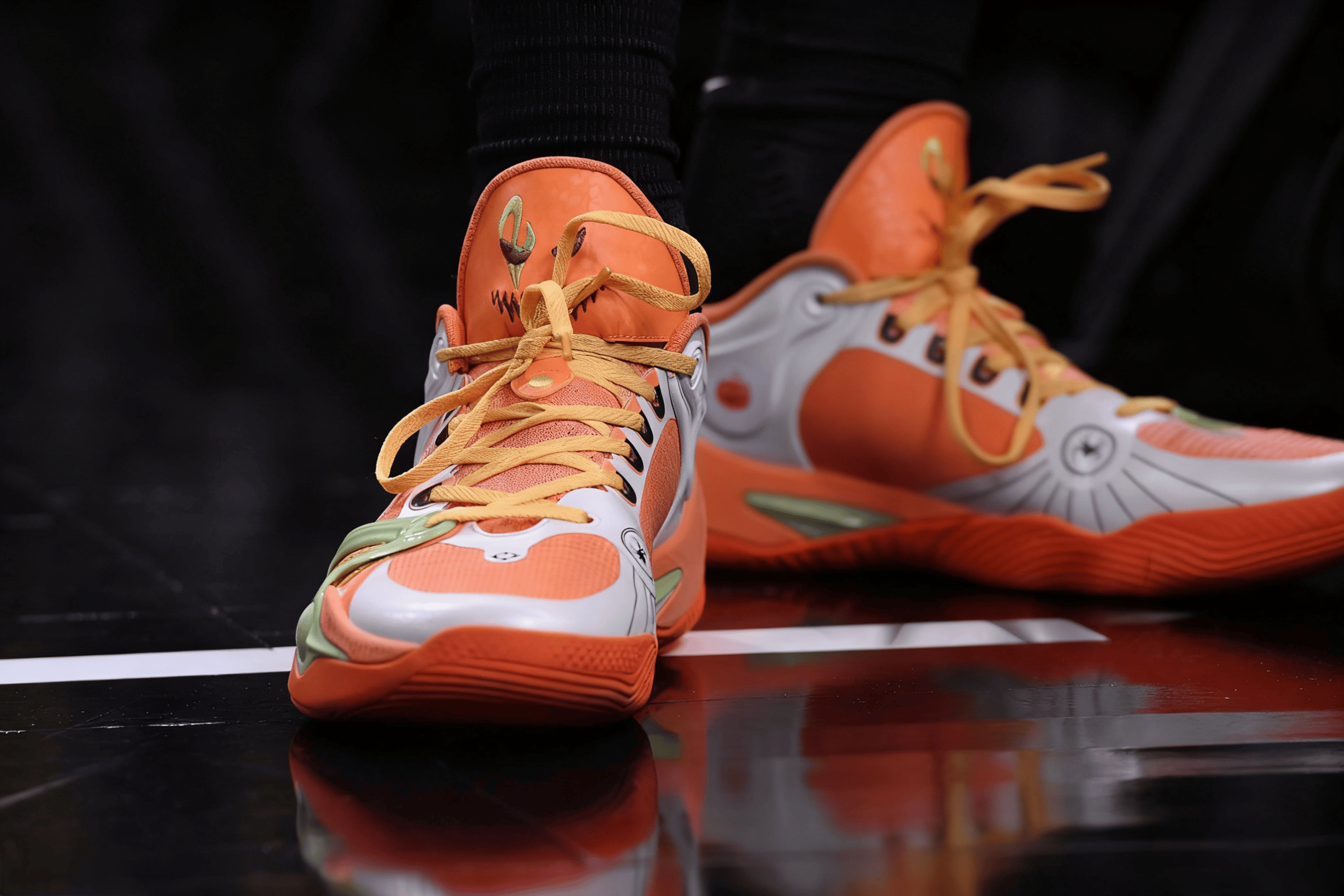 比賽中,板波波杰姆斯基上腳萬(wàn)圣節(jié)配色準(zhǔn)者 BP1。杰姆節(jié)配