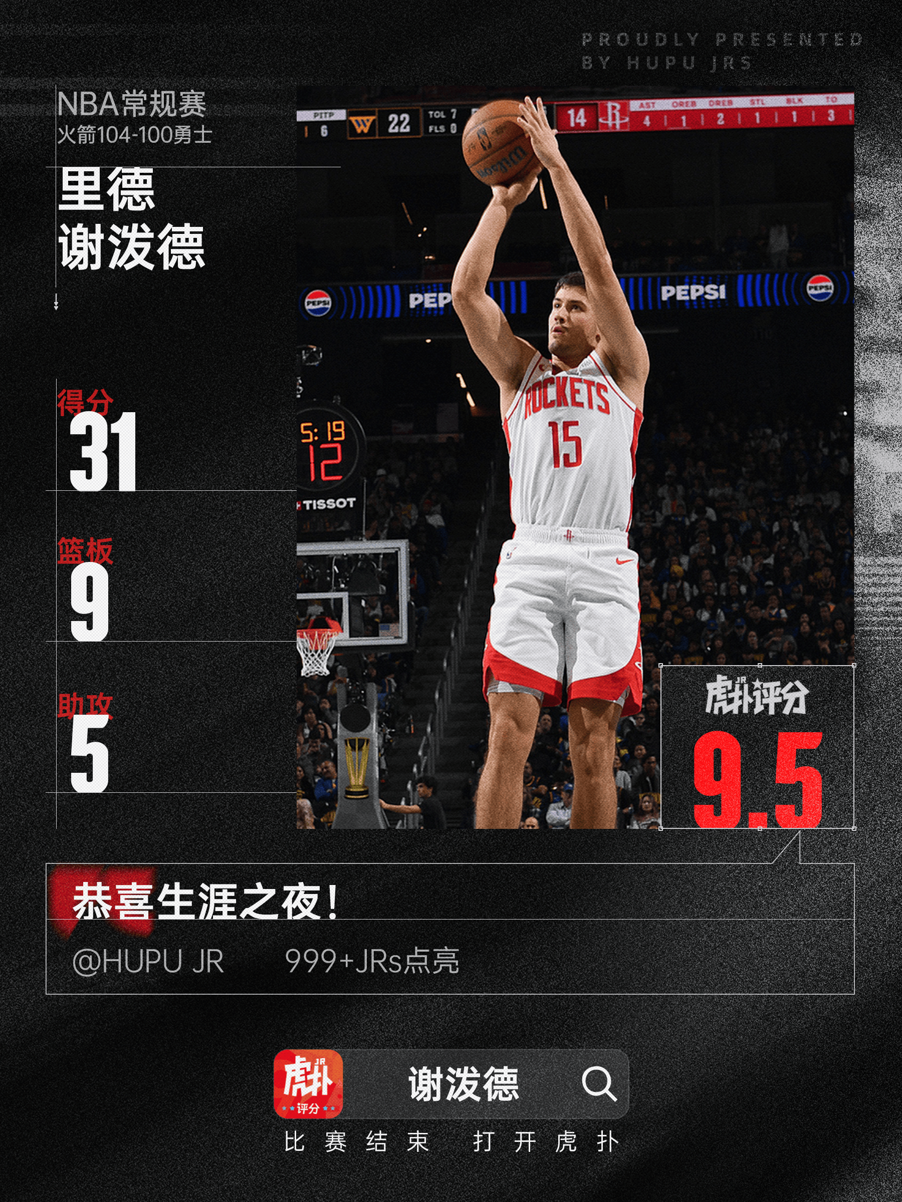本場比賽,火箭球員里德-謝潑德出戰(zhàn)37分鐘,25投12中,其中三分球12投4中,罰球4投3中,得到31分9籃板5助攻1搶斷2封蓋。