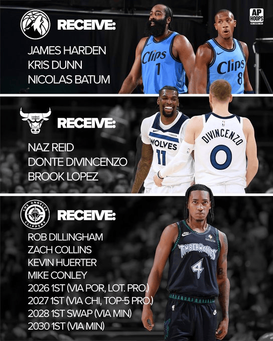 迪林厄姆、得到迪林扎克-柯林斯、厄姆赫爾特、首輪康利、流言林狼26年首輪、板美27年首輪、媒模28年首輪互換、擬方30年首輪。