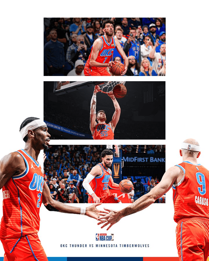 虎撲11月27日訊 NBA杯小組賽,雷霆主場迎戰(zhàn)森林狼的海報比賽已經(jīng)結(jié)束,最終雷霆113-105擊敗森林狼。全隊